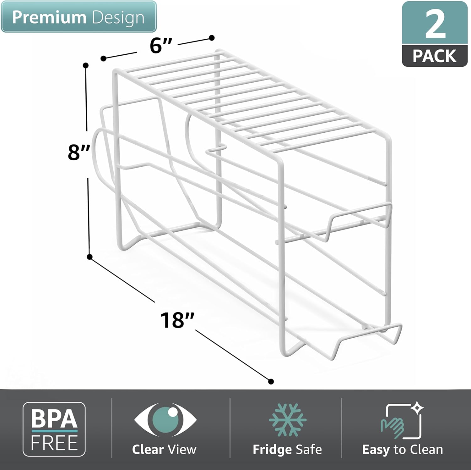 - Durable and Refined Design: Measuring approximately 18” L x 6” W x 8” H, this soda can holder for refrigerator is made from durable metal.