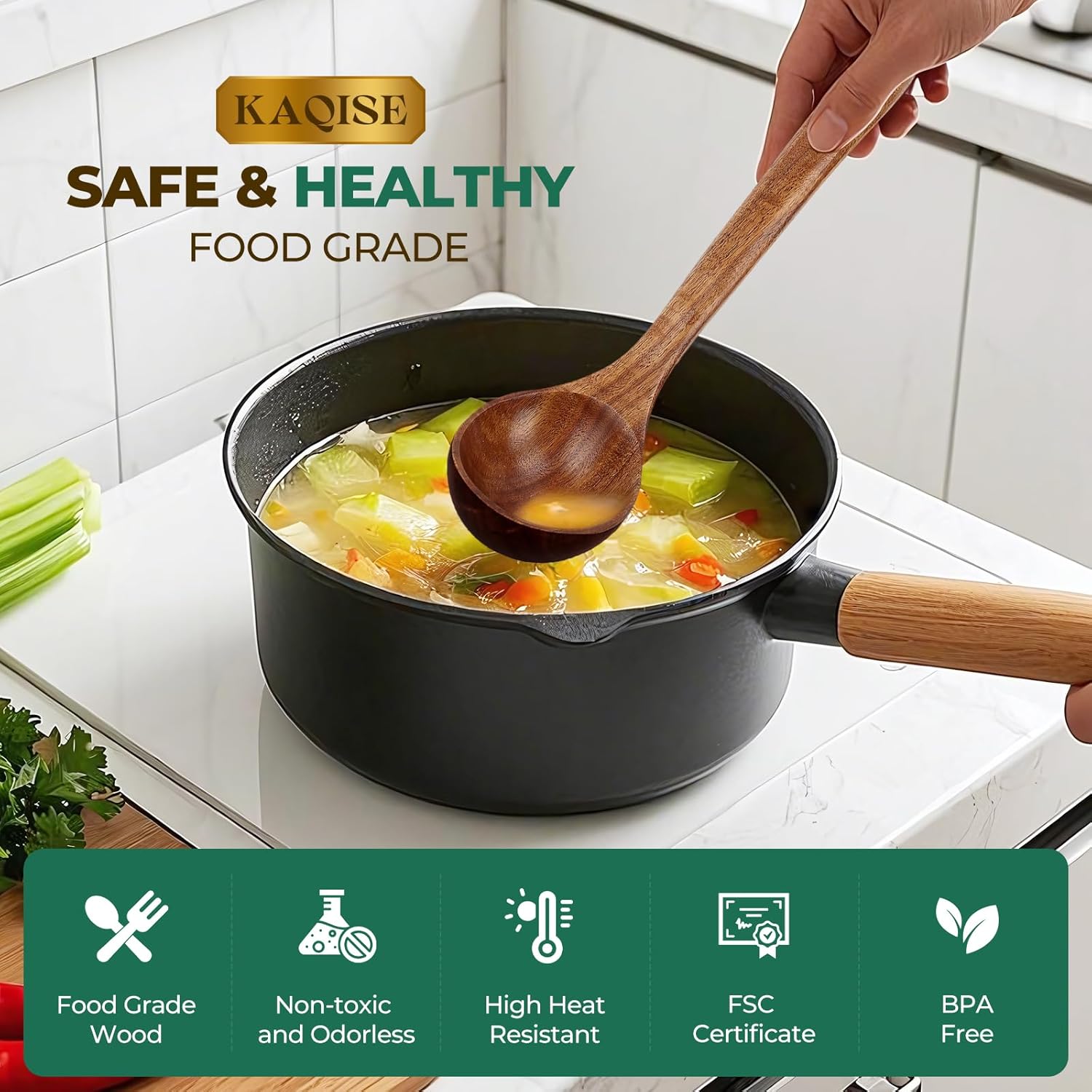 - 【Perfect Size for Practical Use】: This 2-piece set includes a Ladle and a Pasta Scoop Strainer, crafted with the ideal size and shape for everyday cooking. Whether you're serving soup, pasta, or sauces, these Wooden Cooking Spoons offer the perfect balance of practicality and convenience. The long handles ensure comfort and ease during use, making them great for both professional chefs and home cooks.