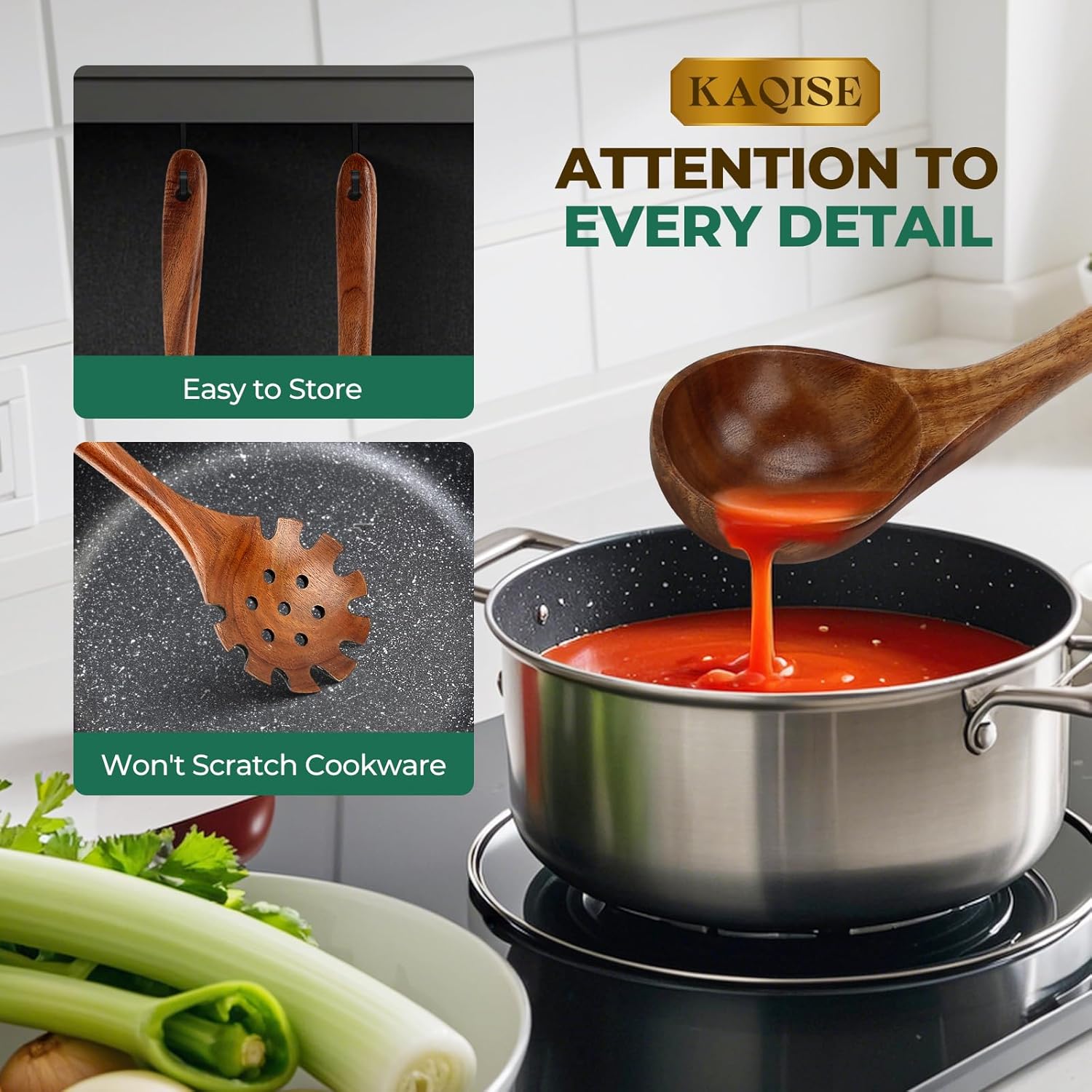 - 【Ideal Gift for Cooking Enthusiasts】: Looking for the perfect gift for a cooking enthusiast? This Wooden Kitchen Utensil Set is an ideal choice! With its premium Teak Wood construction, stylish design, and practical functionality, it’s a thoughtful and beautiful gift for anyone who loves cooking. Whether for birthdays, holidays, or housewarmings, these utensils are sure to delight any home chef.