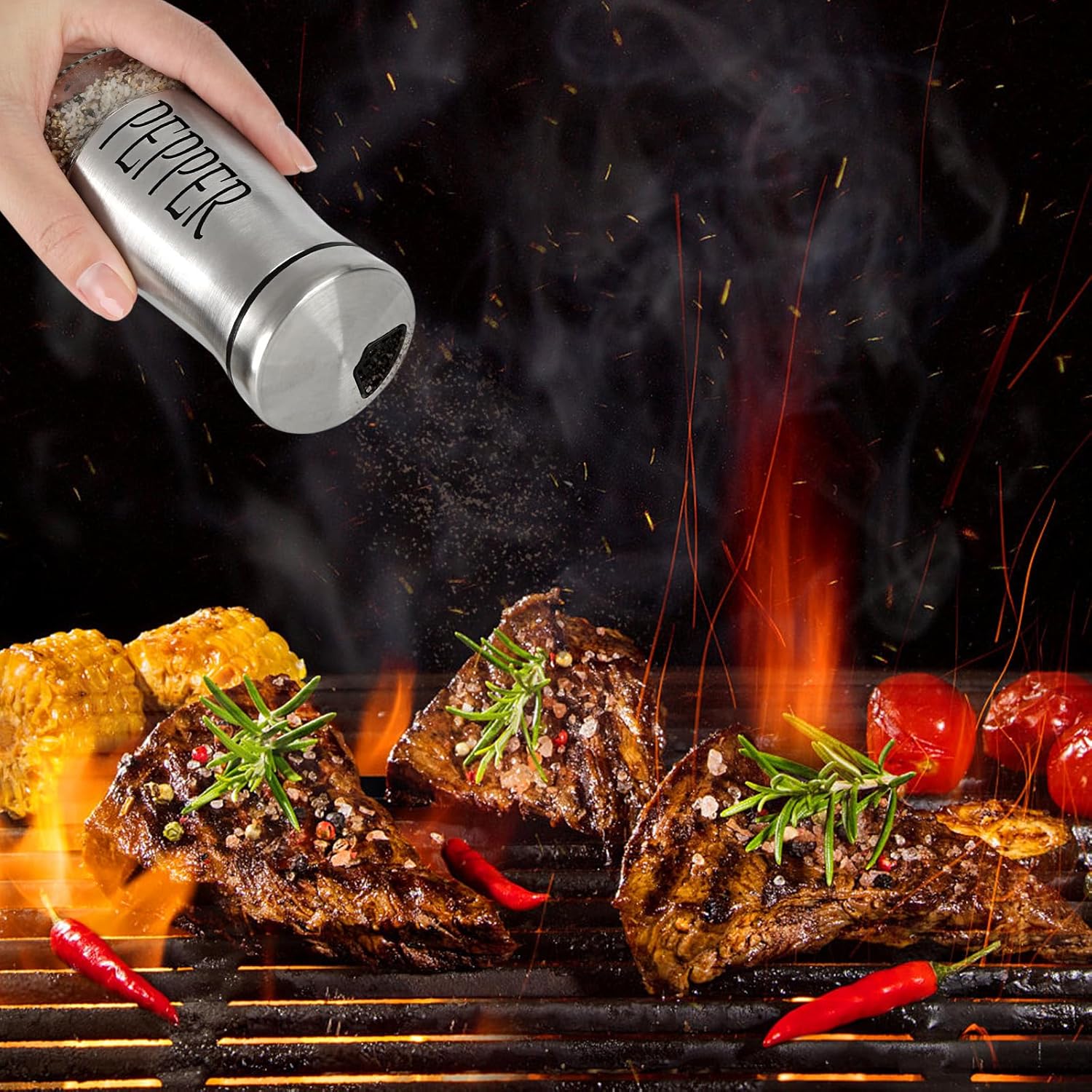Accmor Salt and Pepper Shakers with Adjustable Pour Hole, Stainless Steel Salt Pepper Shaker Dispenser with Glass Bottom for Kitchen Cooking, RV, Camp, BBQ