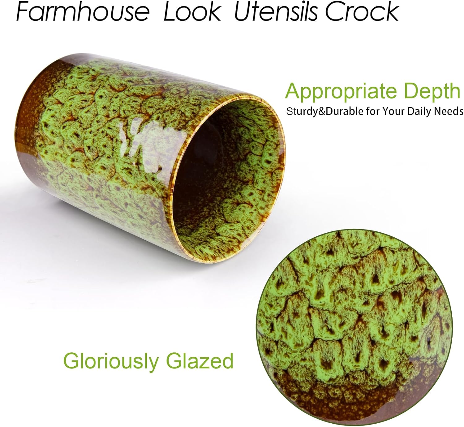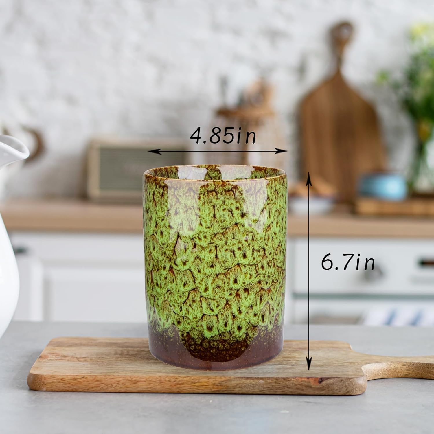 Utensil Holder, Ceramic Kitchen Utensil Holder for Countertop, Large Cooking Utensil Crocks for Kitchen Counter, Morden Utensil Organizer for Spatula, kitchen Decor,Green