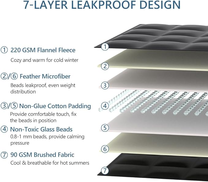 • Meet Your Various Needs: Our weighted blanket is perfect for adults, seniors, and pets. It can be used as a knee blanket for people with leg discomfort. When you are easily distracted at work, you can put heavy blanket over your shoulders, it can help you improve concentration. Body weighted blanket 7 lbs is perfect for people with "sensory needs" or "first-time users". Our weighted blanket is also a good choice if your pets are afraid of "rainy days"