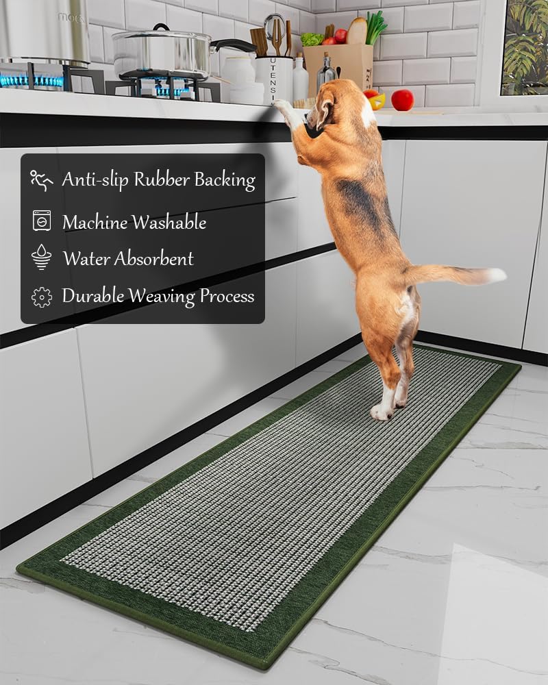 PADOOR Kitchen Mats for Floor, Kitchen Rugs Non Slip Washable, Rubber Backed Kitchen Runner Super Absorbent Long Kitchen Floor Mat Sink Rug, 20"x70" Green