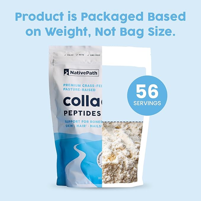 NativePath Collagen Peptides Protein - Hydrolyzed Type 1 & 3 Collagen Powder for Skin, Hair, Nails - 19.8 oz (56 Servings)