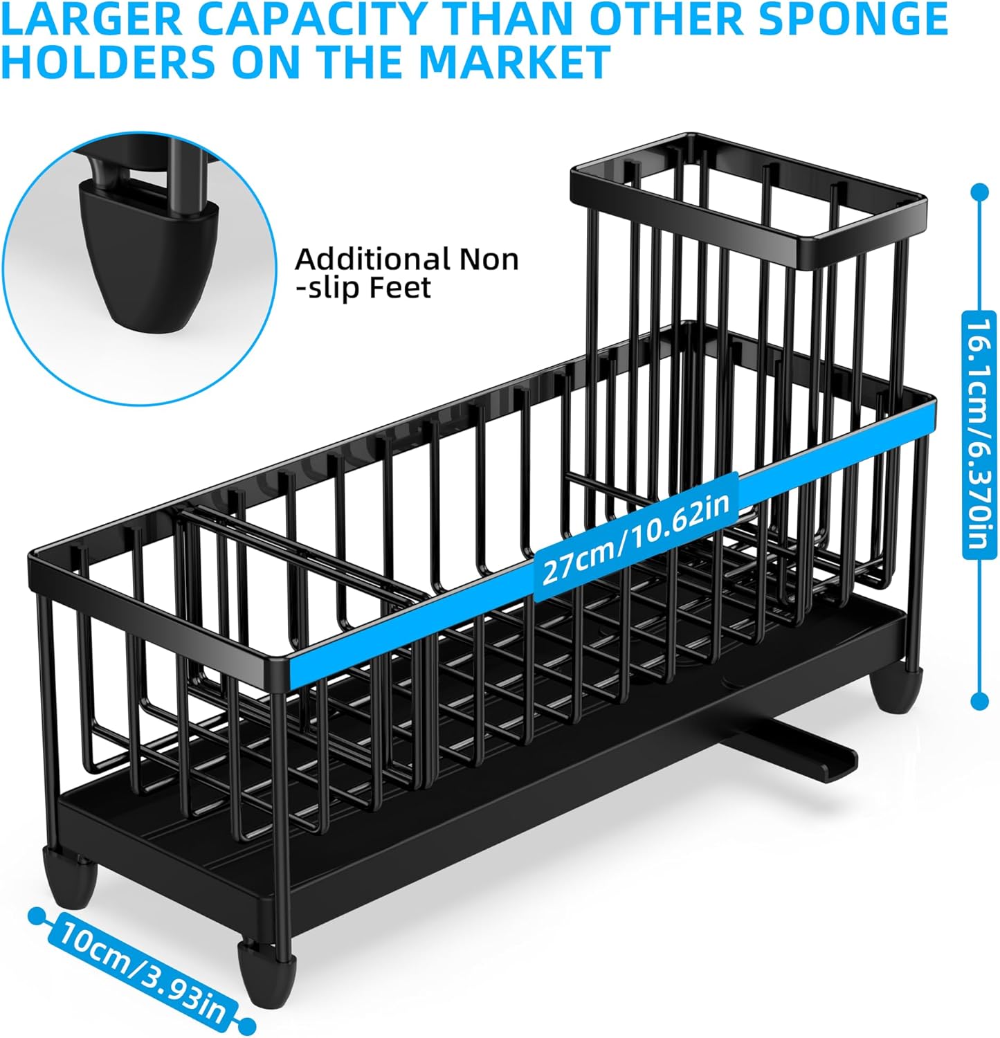 - Stainless Steel Material Please note: The length of the moforoco sponge holder is 10.62 inches. Please measure the size of the sink countertop before purchasing. Confirm whether it matches.