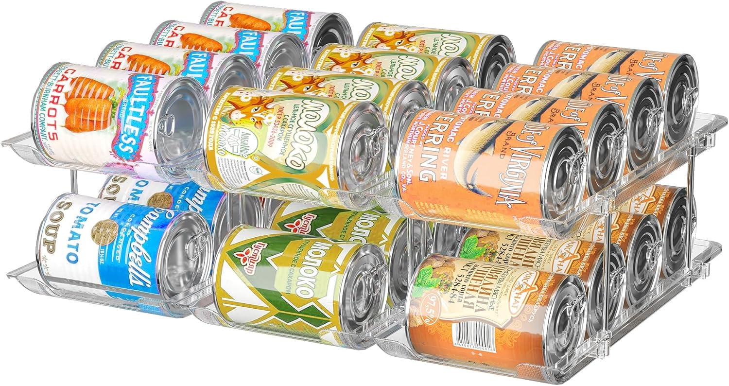 - Size: Canned Food Organizer is transparent, each layer is 4.2in high and 4.9in wide, specifically designed for 4.52in long cans to provide plenty of space for your pantry organization;Each layer is 4.2 inches high and can hold up to 36 cans