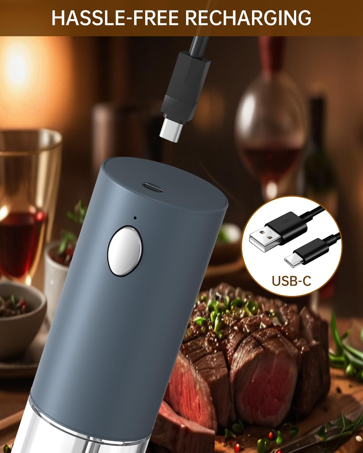 - ✔️USB CHARGING - The Type-C cable makes charging more convenient. Effortlessly recharge the salt and pepper grinder set anytime, anywhere, with the included USB-C cable. A full charge takes less than an hour, eliminating the need for frequent battery replacements and guaranteeing uninterrupted use(USB cable compatible with 5V adapter)