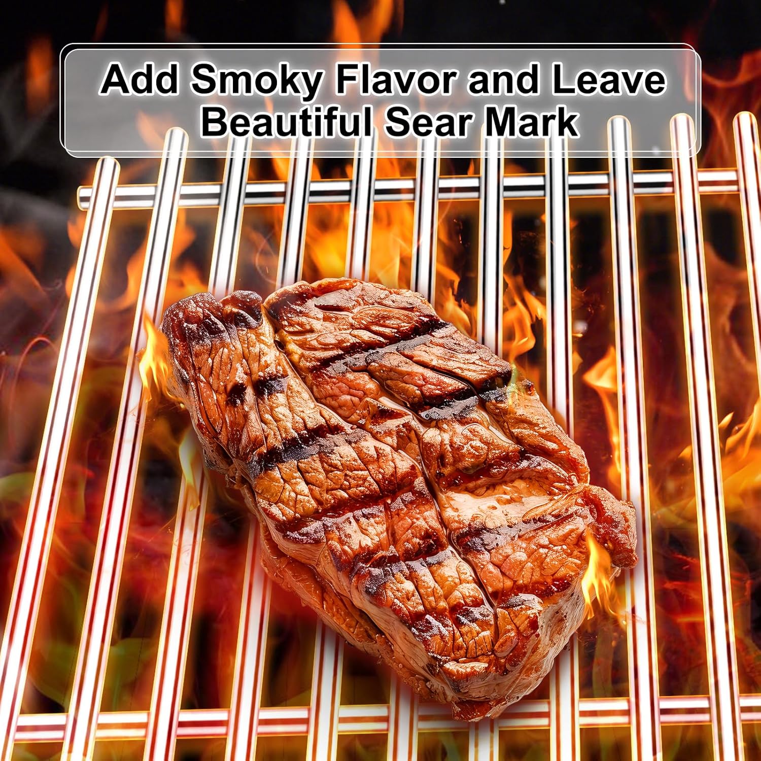 - Design: Rapid preheating and even heating, round bars leave beautiful sear mark on food, to create delicious barbecue flavor in the outdoor