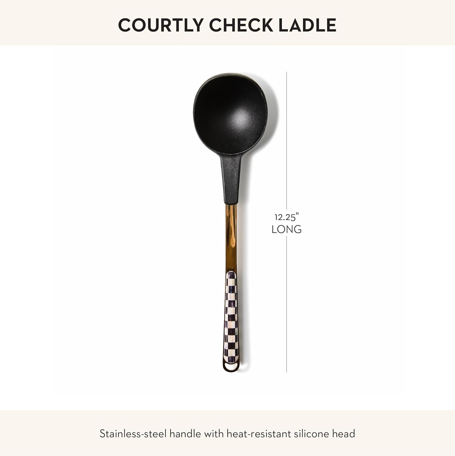 - ELEGANT SERVING ESSENTIAL: This cute serving ladle features our classic black-and-white Courtly Check pattern. It is crafted with a stainless-steel handle and a heat-resistant silicone top and is a chef-worthy serving tool.