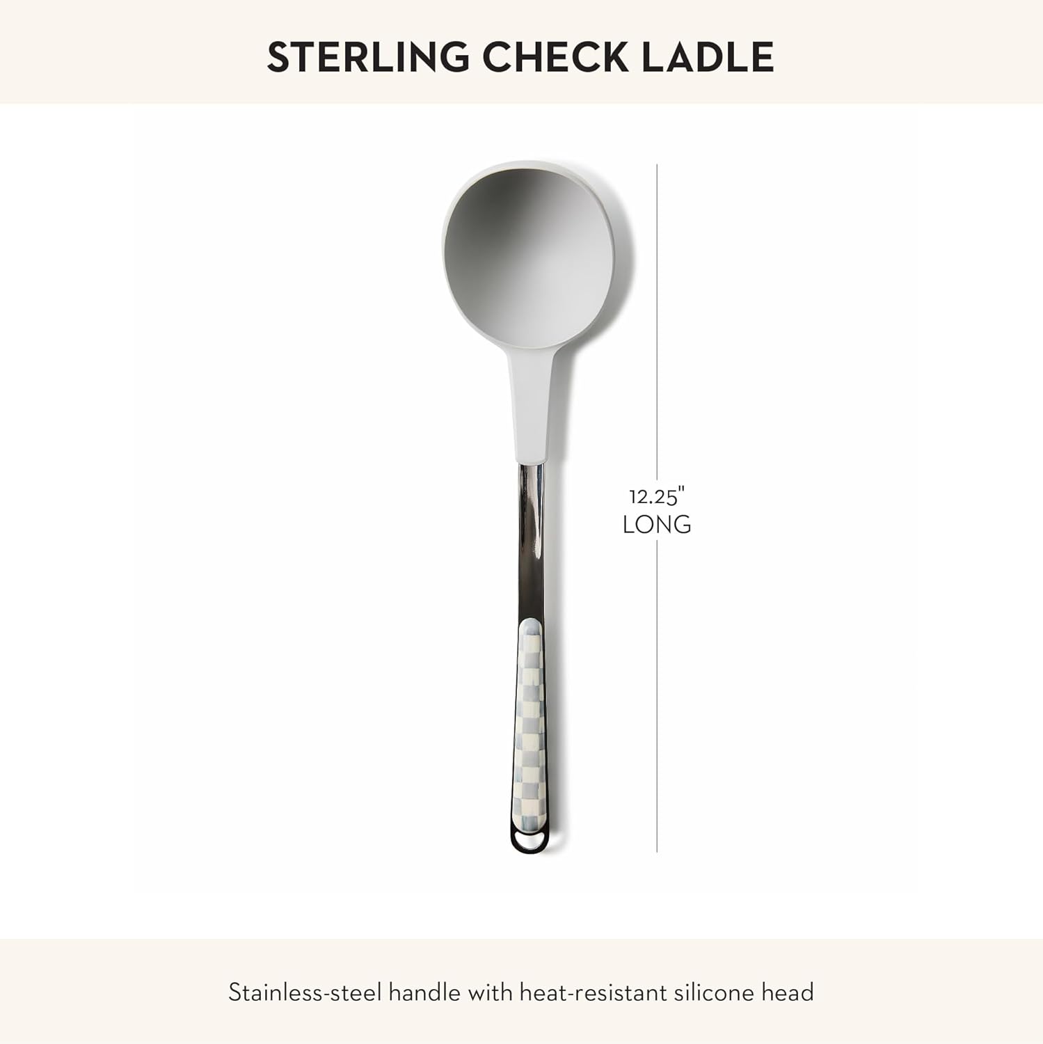 MACKENZIE-CHILDS Kitchen Ladle, Silicone Ladle Spoon for Cooking, Gray-and-White Sterling Check