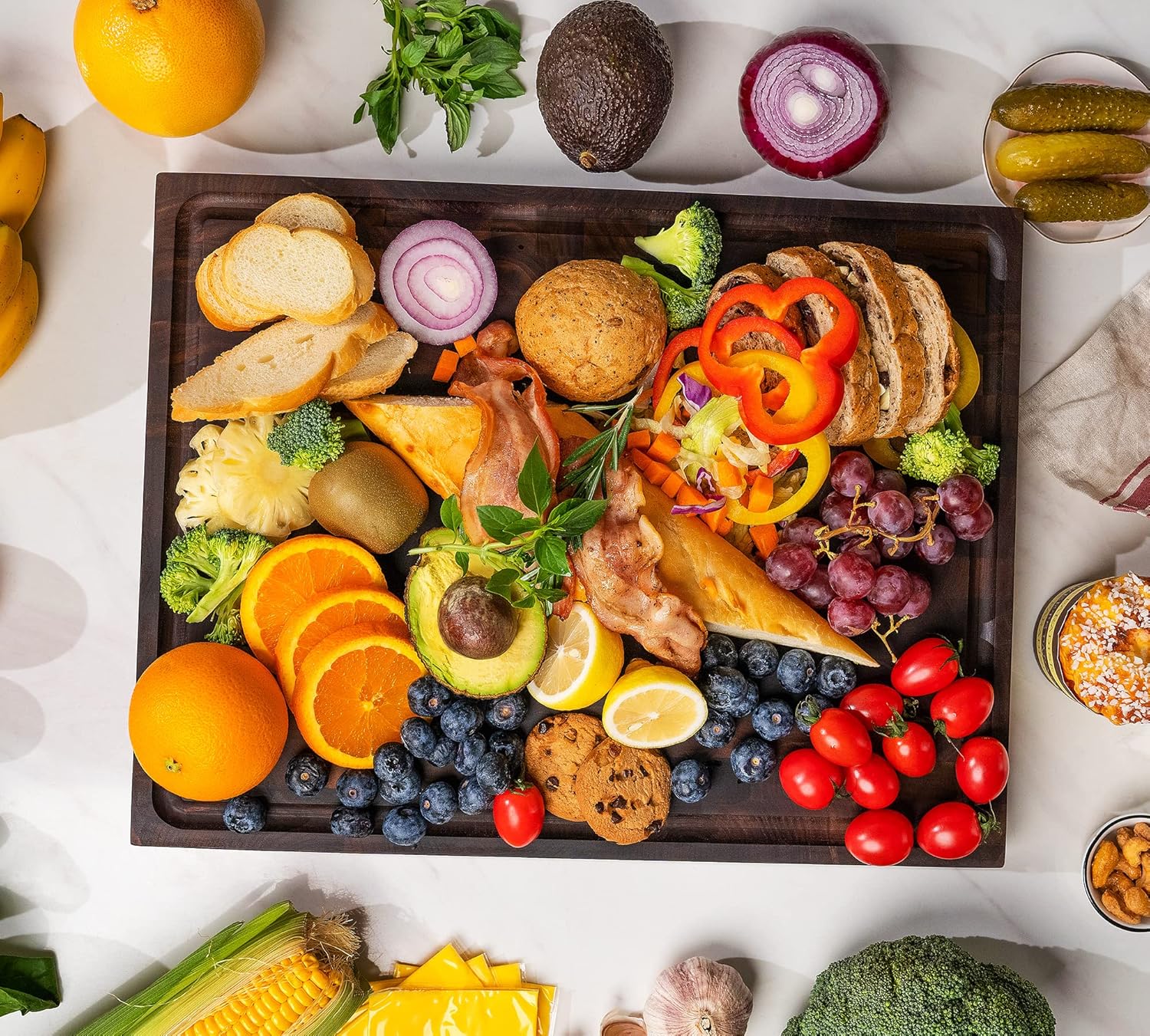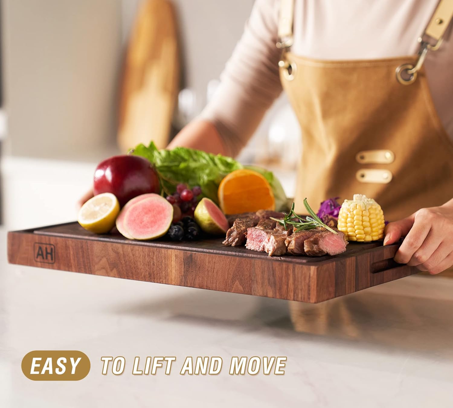- FUNCTIONAL & VERSATILE β This reversible butcher block measure 17x13x1.5 inch, 8.37 lb, large enough to cut everything from meet, fruits to veggies, the weight keeps it from shifting, which is safer with big cutting jobs. Deep juice groove on one side to efficiently catch any liquid during food prep and serving. Super easy to lift and move with built-in handles on both ends. It can also double up as a cheese platter, charcuterie board, or serving tray