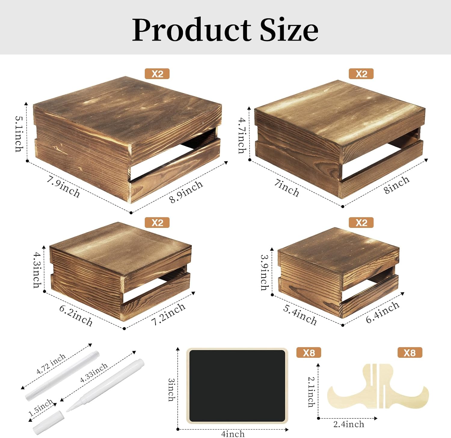 8 Pcs Buffet Risers with Mini Signs, Rustic Wood Cake Stands, Food Risers for Buffet Table, Dessert Display Stand, Wood Crates, Rustic Cake Stand for Party, Wedding, Birthday, Baby Shower, 4 Sizes