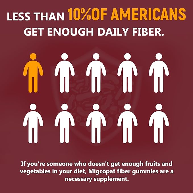 • 10G Natural Plants Fiber : Only 7% of Americans get the recommended daily amount of fiber every day. Migcopat Gummies offers the most fiber per serving. With just 2~3 gummies every day, Migcopat Gummies supplements more than 30% of your daily fiber intake.Our Fiber Gummies are made with natural sweetener, a plant-based zero-calorie sweetener that won't cause cavities.