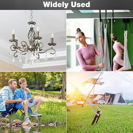 • 【Wide Application】Twist keychain connectors are versatile accessories. Can be used for shade sails, fitness equipment, fence gates or chandeliers. D shape quick links can also be used for outdoor such as hiking, fishing, camping, rope fixing, truck tire chains