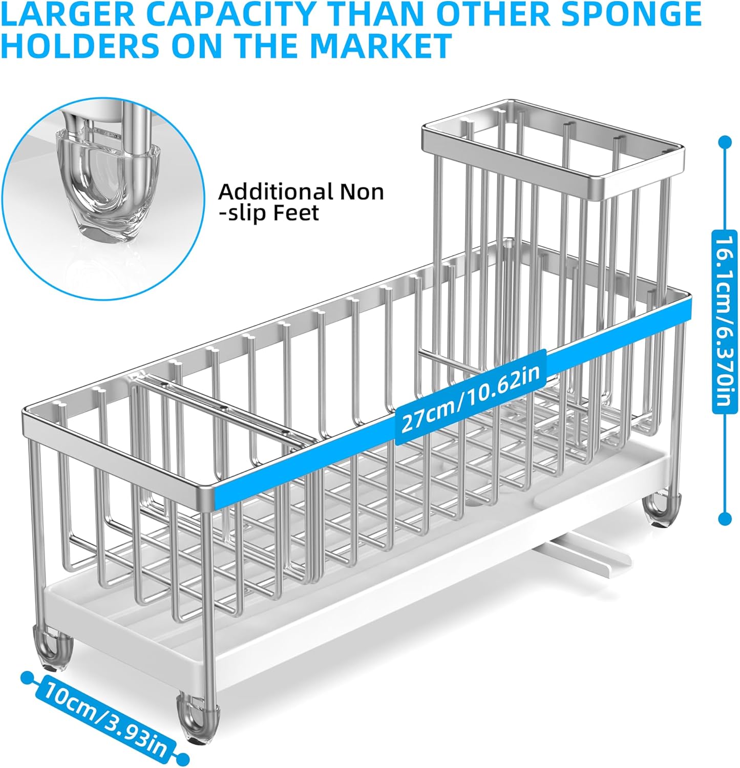 Moforoco Larger Version Sponge Holder for Kitchen Sink, Sink Caddy with High Brush Holder, Kitchen Sink Organizer Countertop Rustproof 304 Stainless Steel (Stainless Steel)