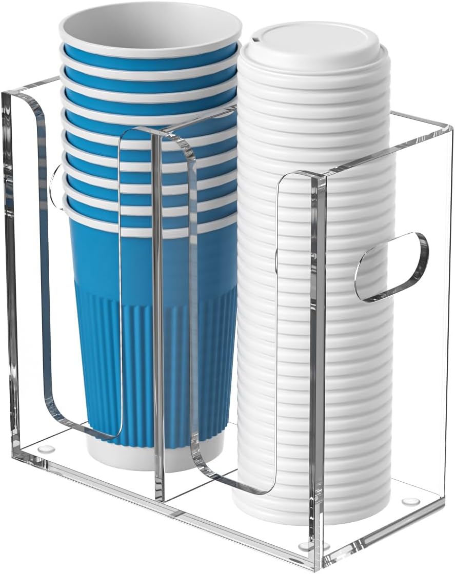 - STRONG AND STURDY: space-saving acrylic coffee lid holder is easy to use, convenient for grabbing on-the-go cups or lids, holding disposable drinking cups, disposable coffee cups, lids, and straws, making hot coffee in the morning, makes your life simpler by providing a place to store your coffee cups neatly and orderly without mess, with wide openings on each compartment, cup storage rack allows you to take out or refill the disposable cups in an easier way