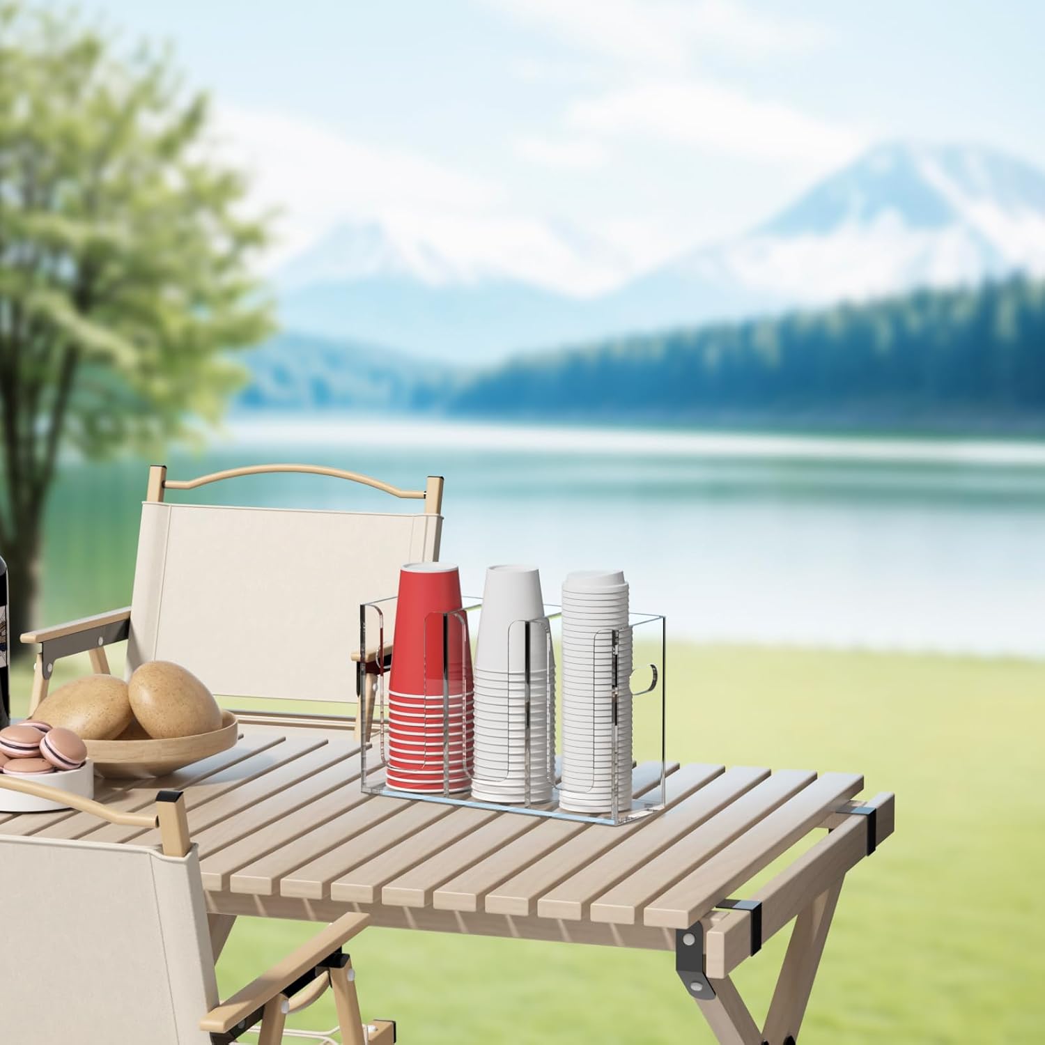 - MODERN: well made and durable, with a glossy surface, this functional acrylic coffee bar organizer features smooth rounded edges and polished surfaces, it complements various decor styles and adds a touch of elegance to your coffee maker area in the kitchen, disposable coffee cup holder for countertop can be used in coffee bar, office, breakroom, restaurant, church, RV, makes a nice hostess gifts for christmas party or family gatherings
