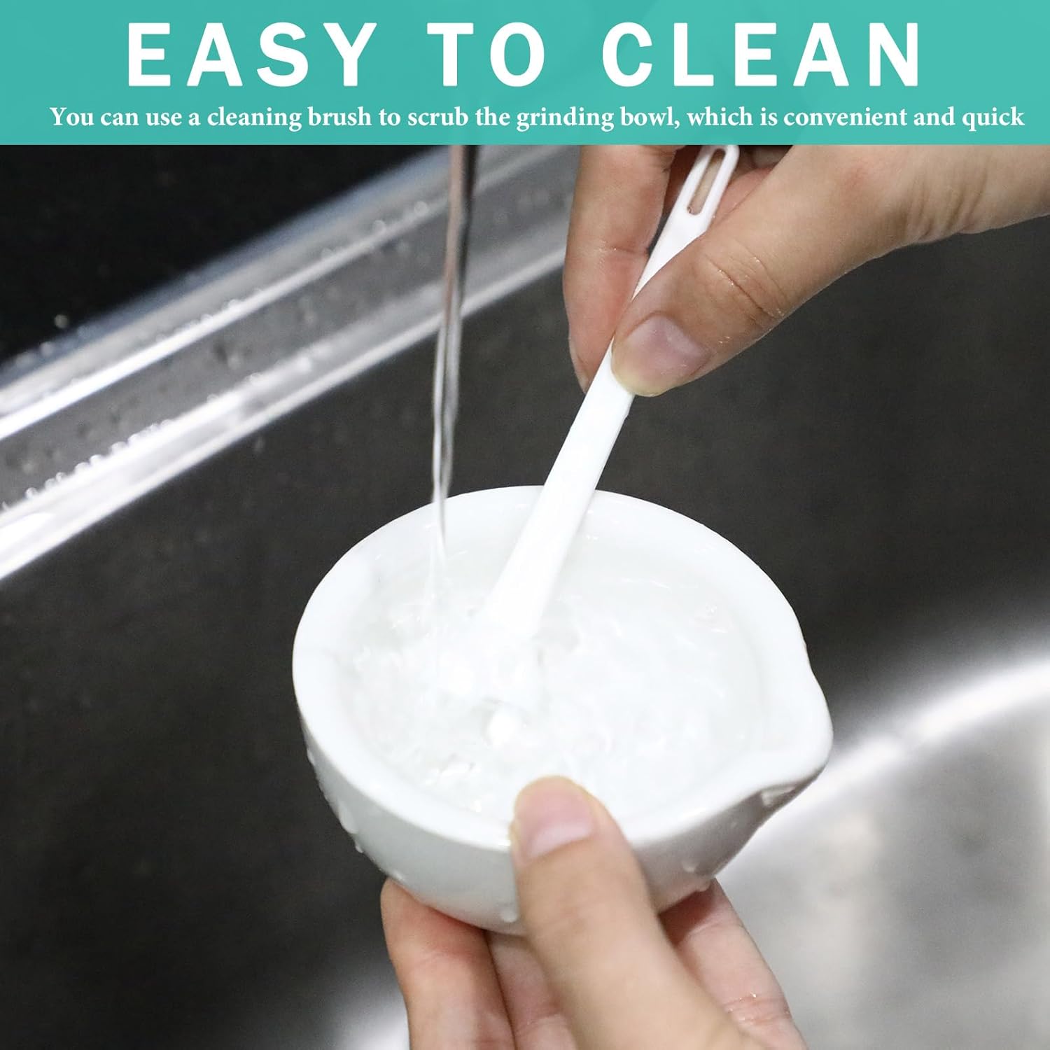 - Easy to use: the ceramic mortar interior is unpolished and rough for better grinding, and the ceramic mortar absorbs no flavor, helps you crush stuff easily; You can also easily take out all you crush, just combine the small gaps on the porcelain to pour out conveniently