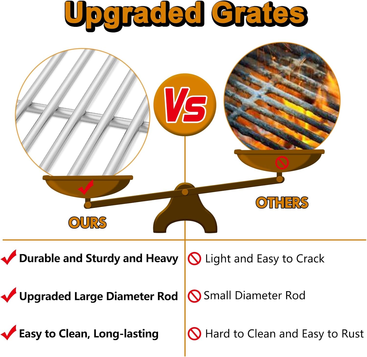 - 【Material of Kitchenaid Replacement Parts】 The kitchenaid grill grates is make of upgraded stainless steel, which makes the kitchenaid grill parts more durable, resilience to rust and corrosion, resistant to chipping, cracking, deformity, evenly heat distribution and long-lasting, withstanding the heat generated during grill