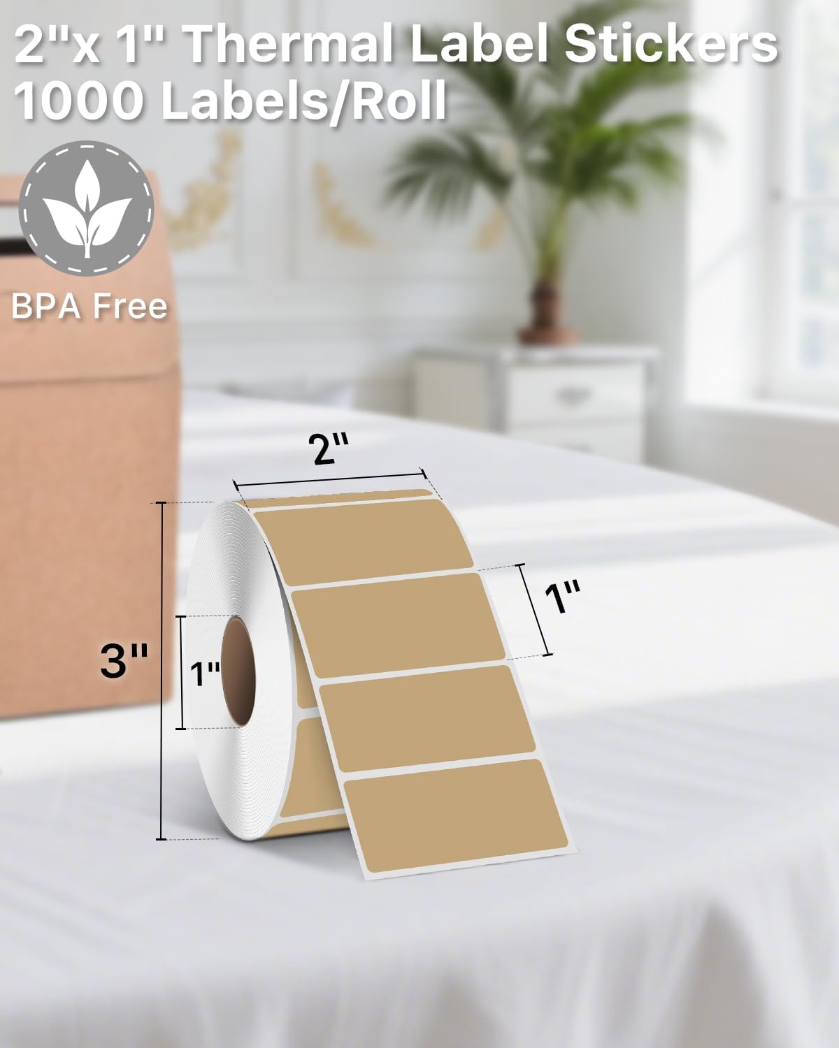 iEager 2x1 Inch Thermal Labels, Brown Rectangle Thermal Printer Stickers, Durable Shipping Label Printer Sticker for Barcode, Name, Address, 1000 Labels/Roll