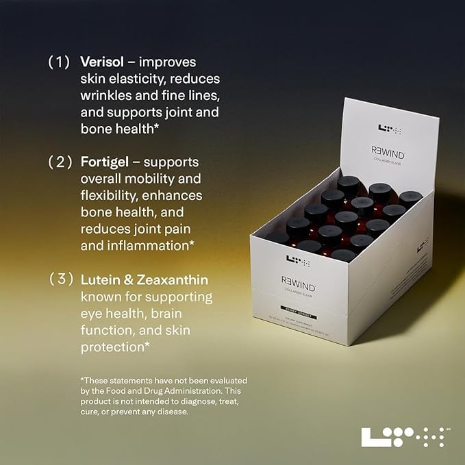 • Antioxidant-Rich Blend: Rewind Collagen Elixir features lutein, zeaxanthin and antioxidants to support an even-toned complexion*