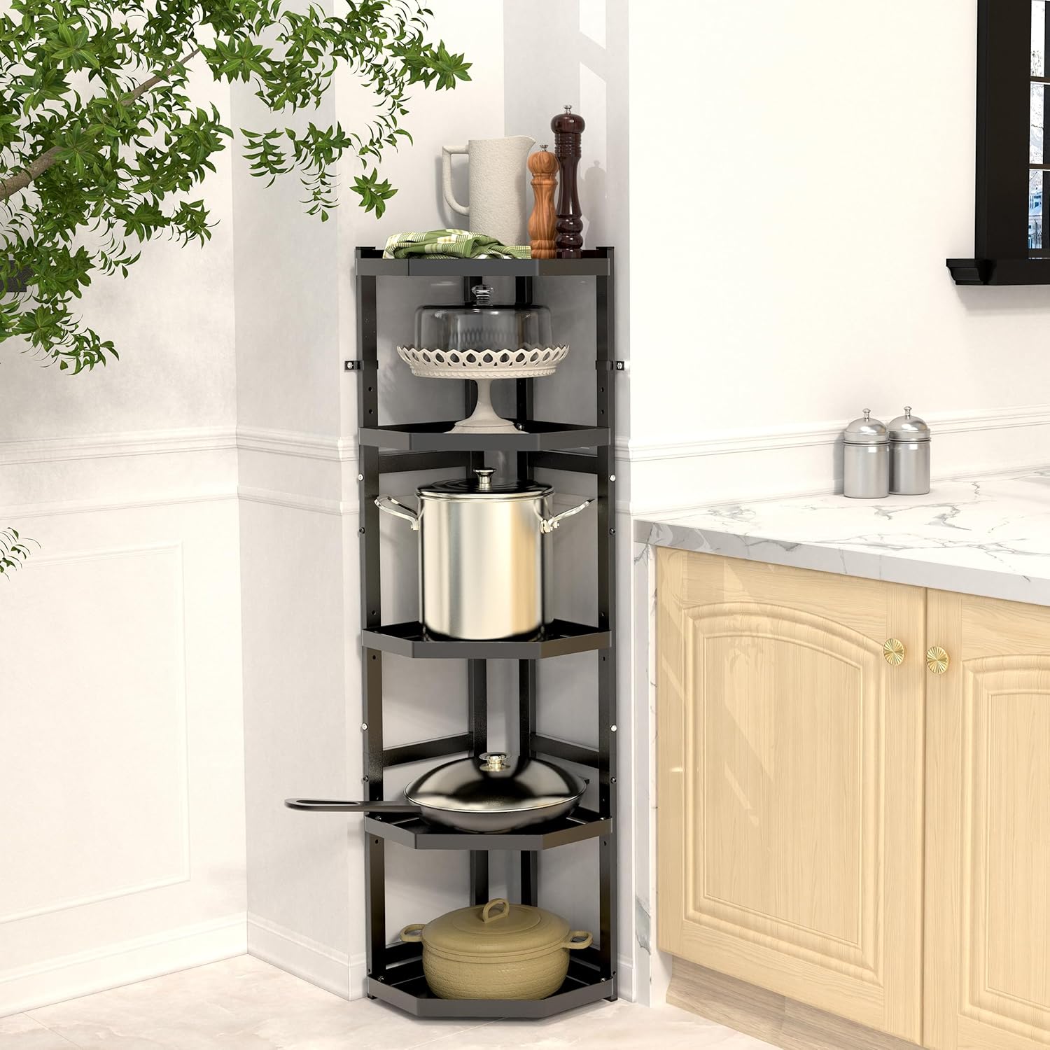 5-Tier Multifunctional Adjustable Pan & Pot Rack for Kitchen, Pan Organizer, Pot Lid Organizer (Big Corner 5-tier)