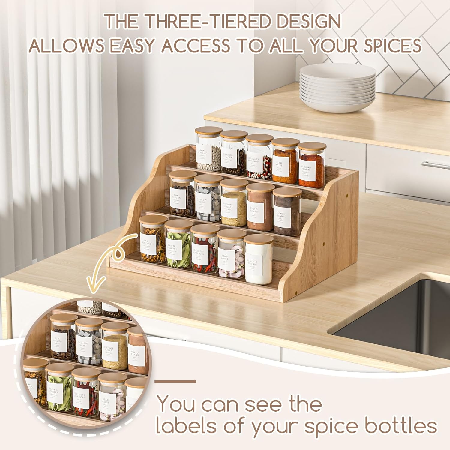 - Easy access: The tiered spice rack provides easy visibility and accessibility to all your spices and condiments. The tiered heights of the shelves make it easier to find and access specific spices while cooking, ensuring a smooth and efficient cooking experience