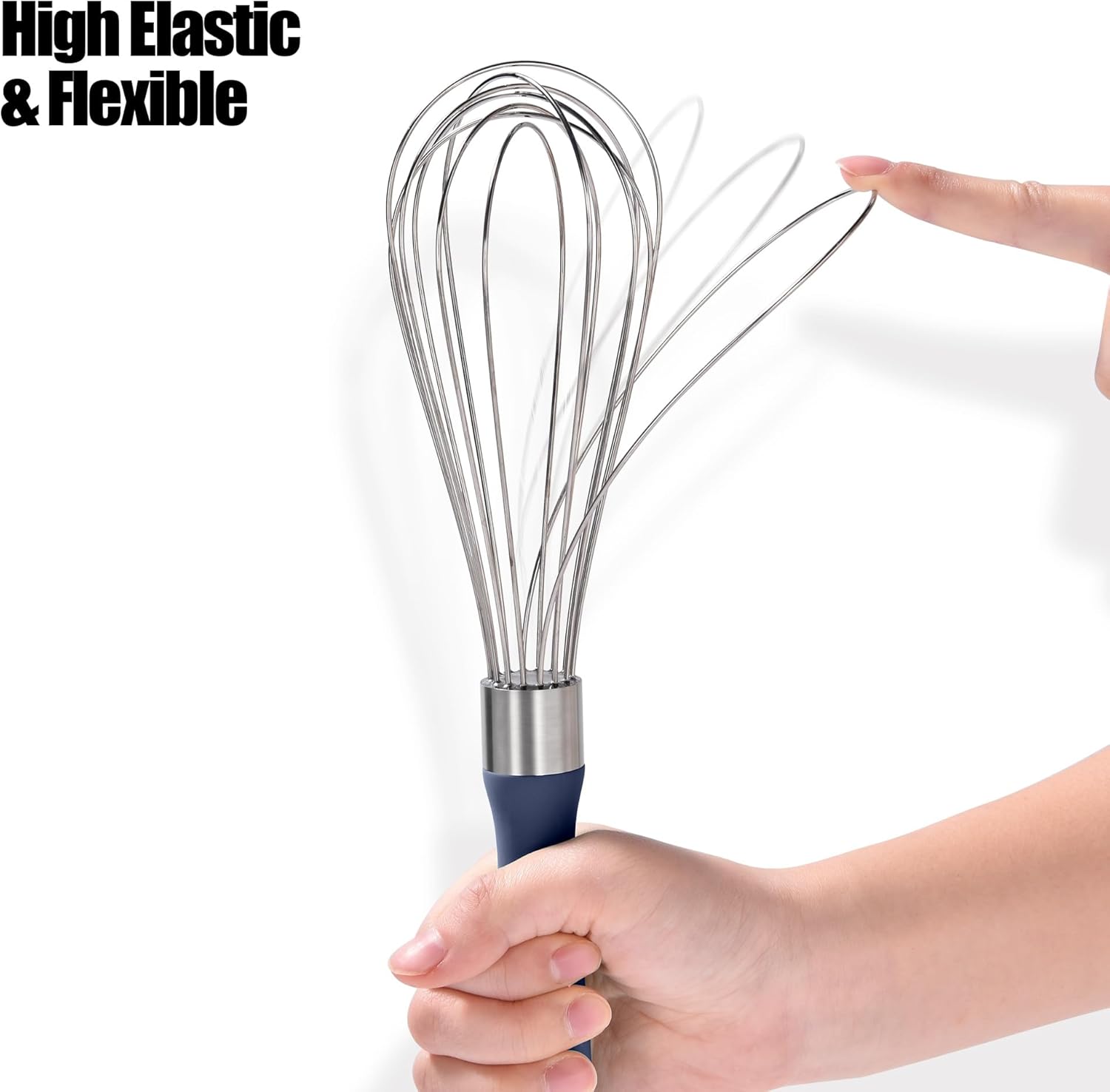 18/8 Stainless Steel Balloon Whisk, Doosu Kitchen Whisk for Cooking Handheld Egg Beater with Rust-Proof Sturdy Wires & Non-Slip Silicone Handle for Beating, Stirring, Blending (8 Wires, Navy Blue)