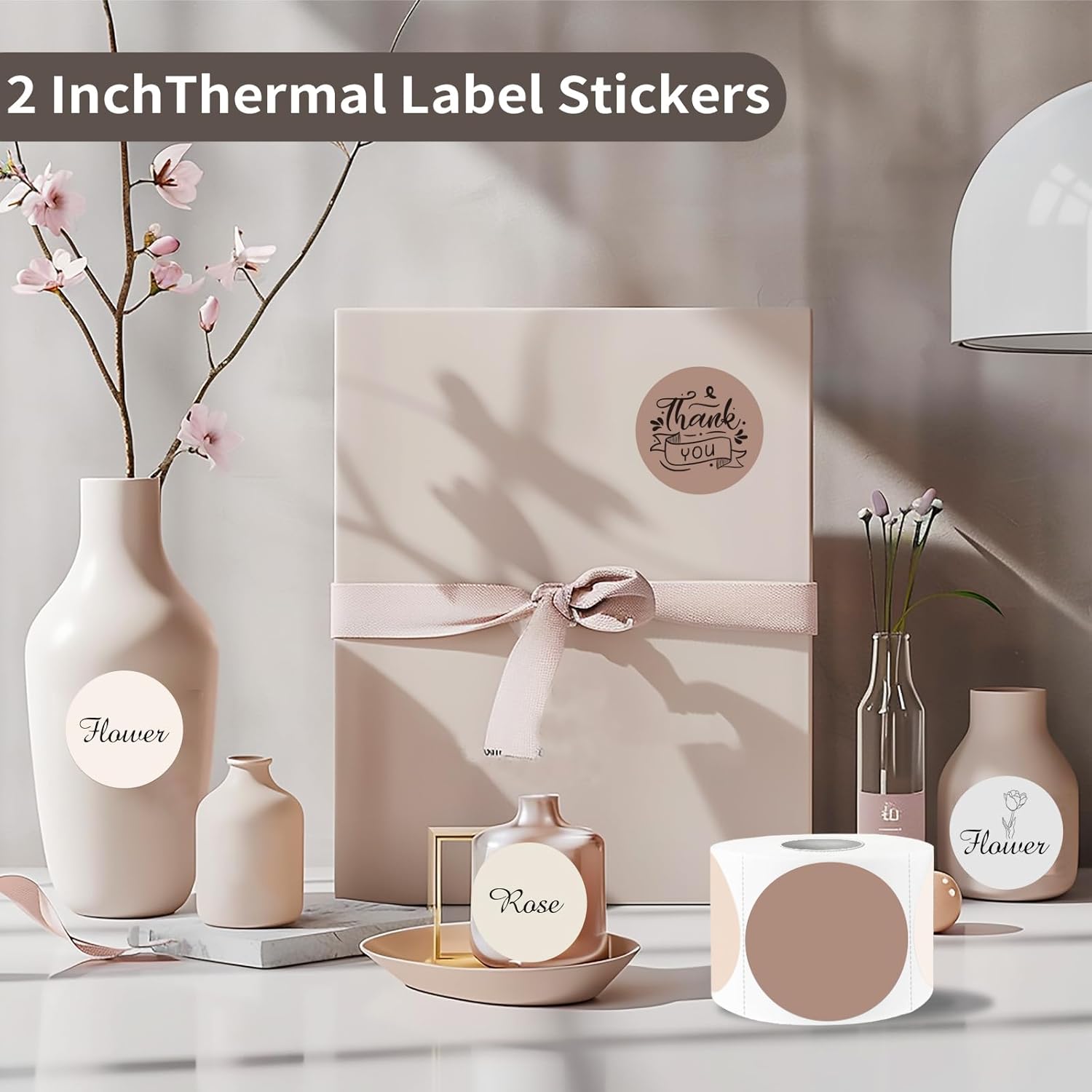 2 Inch Beige Gradient Round Thermal Label Printer Stickers, Self-Adhesive Direct Labels for DIY Logo Design, Name Tag (500 Labels/1 Roll)