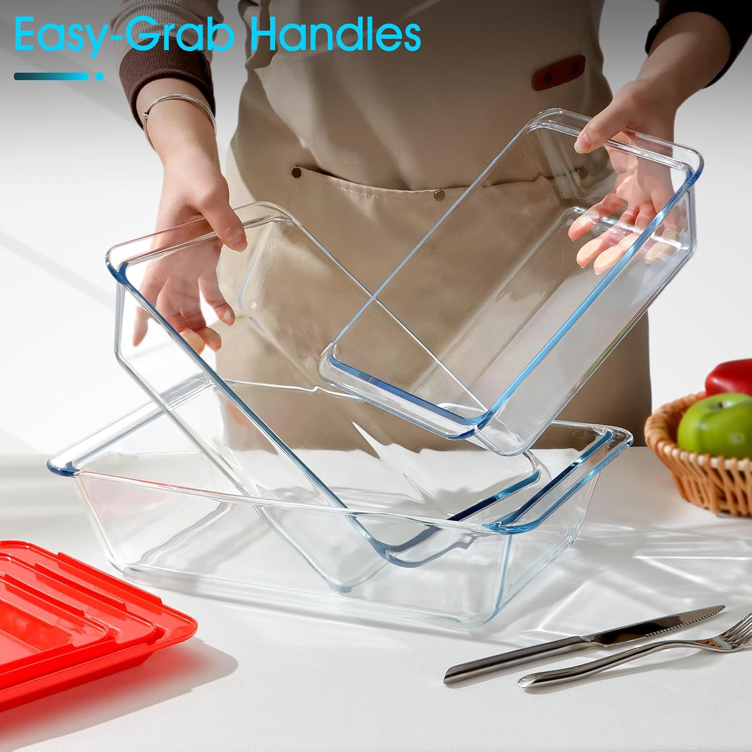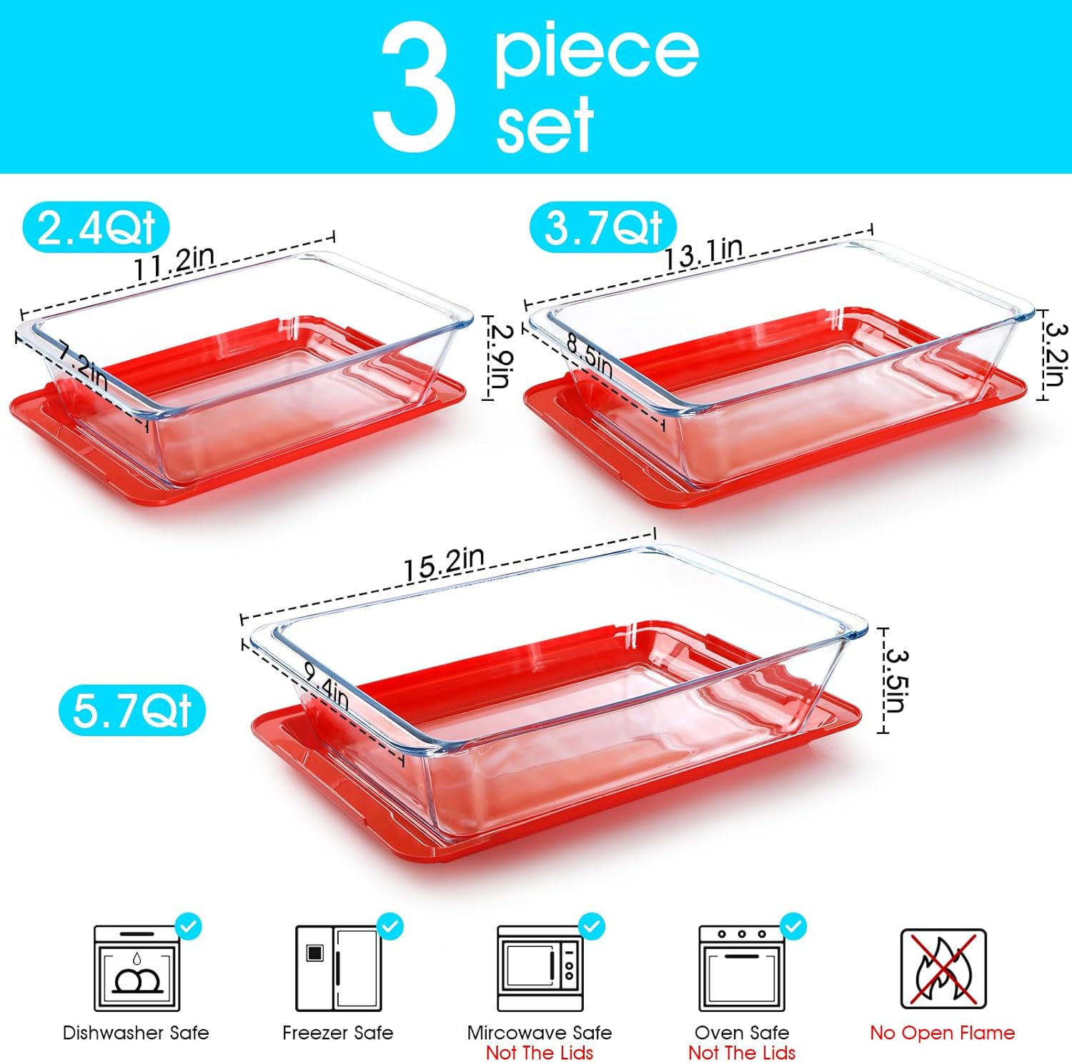NUTRIUPS 6-Piece Deep Glass Baking Dish with Plastic Lids, 2.4+3.7+5.7Qt Deep Baking Pans for Lasagna Leftovers, Rectangular Glass Bakeware for Oven