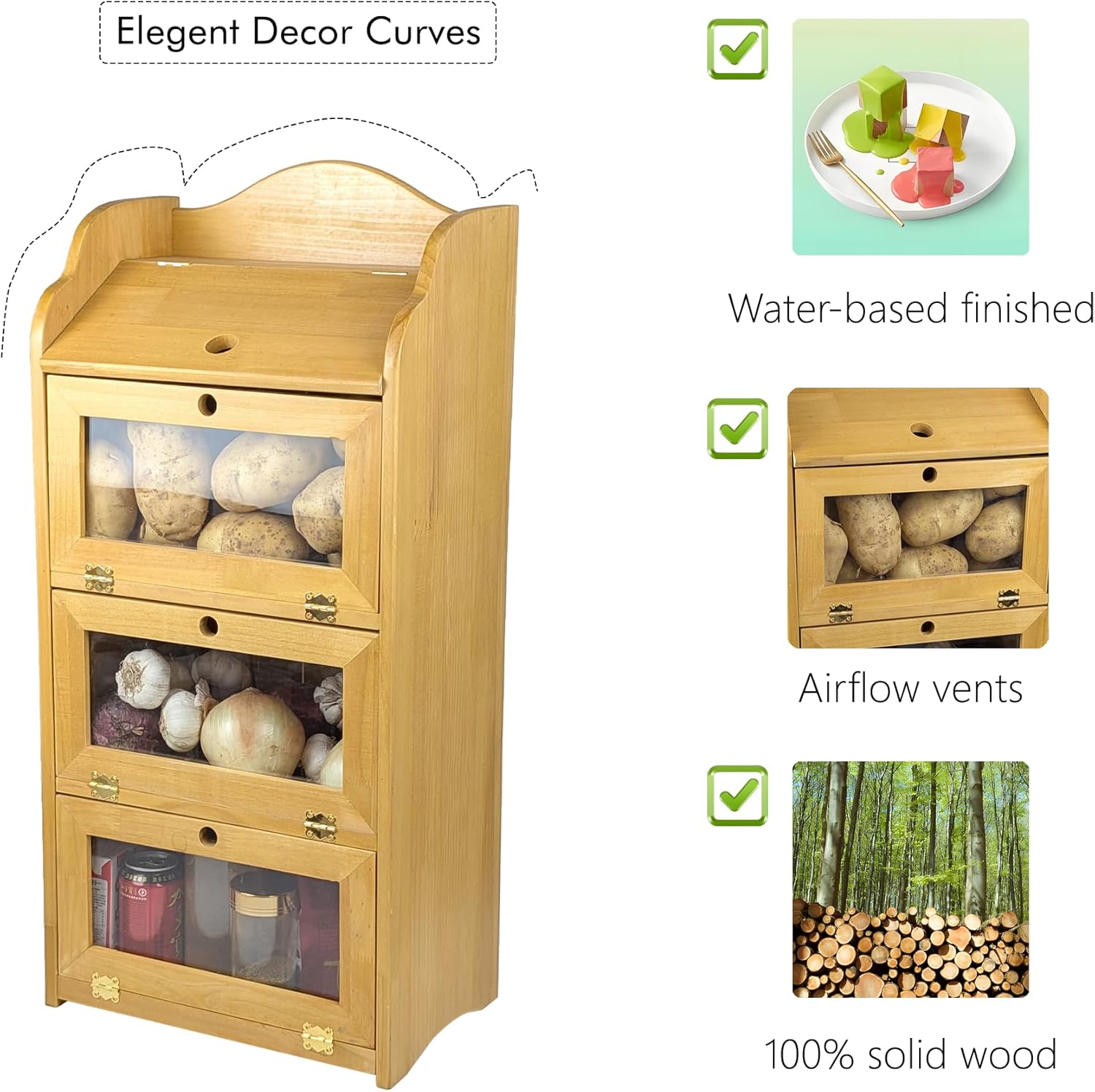 - Efficient Storage Solution: Keep your potatoes, onions, and garlic fresh and organized with this multi-functional storage bin. The built-in garlic keeper ensures each vegetable has its own dedicated space