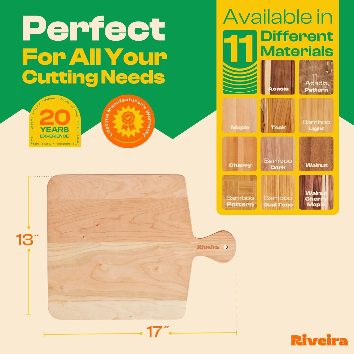 - Handle Everything with Confidence — The built-in handle holds of the cherry cutting boards are designed for handling everything with confidence and easy maneuvering. Pre-oiled and ready for immediate bewilderment, this wooden chopping board is not just convenient for the kitchen mess but has a unique design to maintain, ensuring a performance that is both comfortable and clean for chopping boards for kitchen. Riviera non toxic cutting boards for kitchen will be perfect in your kitchen.