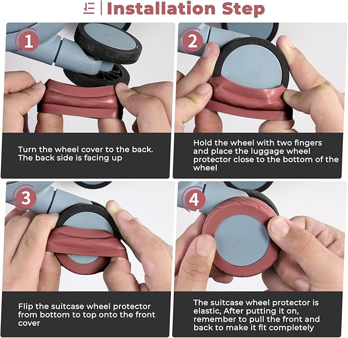 • [Fits Most Suitcases] These suitcase covers for luggage wheel are suitable for suitcases with wheel diameter between 2.0-2.4"(50-60mm),the distance between the luggage wheel and wheel base fender should be more than 0.07"(1.8mm),and the distance between the luggage wheel and axle should be more than 0.05"(1.2mm) ,This Suitcase wheel cover for luggage Suitable for 4x2 double wheels, not suitable for 4x1 single wheels luggage