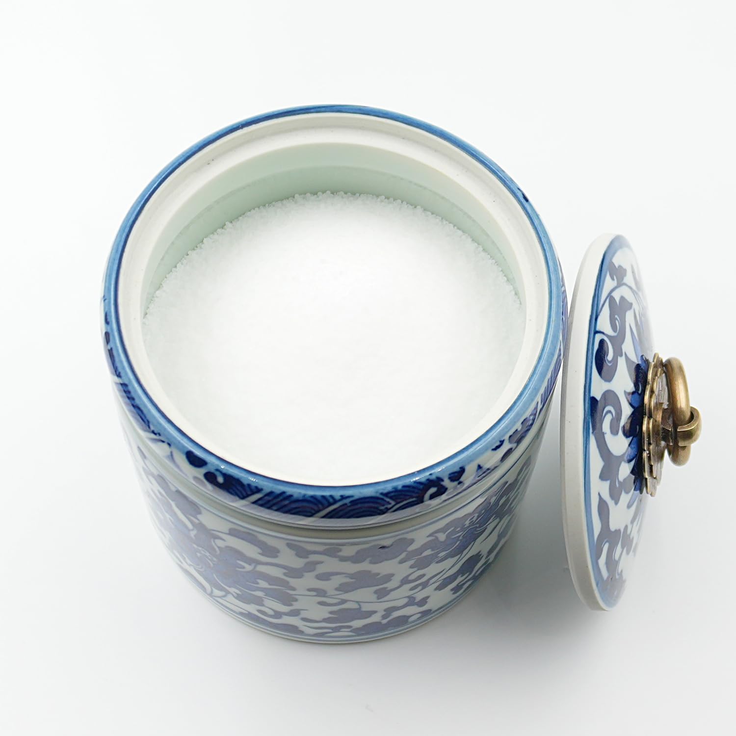 - 【Elegant Blue and White Design】Featuring a timeless blue and white ceramic pattern, this salt cellar adds a touch of luxury to your kitchen with its polished brass knob.