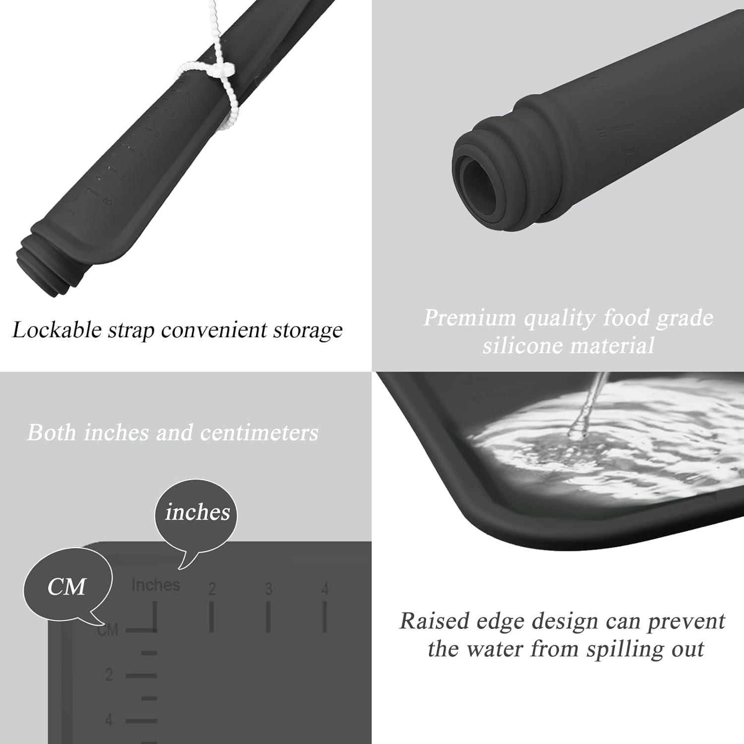 Silicone Pastry Mat 28" x 20" Extra Thick Dough Rolling Mat with Measurements and Edge Heightening, Non-stick Food Grade Silicone Baking Mats for Pastry, Bread, Cookies, Pizza, Fondant, Pasta