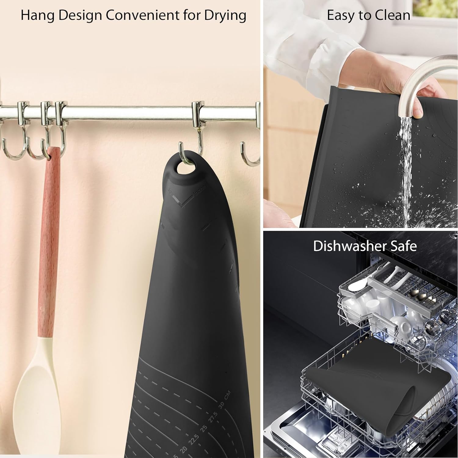 - Non Stick Surface And Non Slip Bottom: Our silicone baking mat features a non-stick design, you can easily knead the dough, and the dough and oil will not stick to the surface. Also the kitchen silicone pad has a strong adhesion and non-slip design, ensuring it stays firmly in place during vigorous kneading