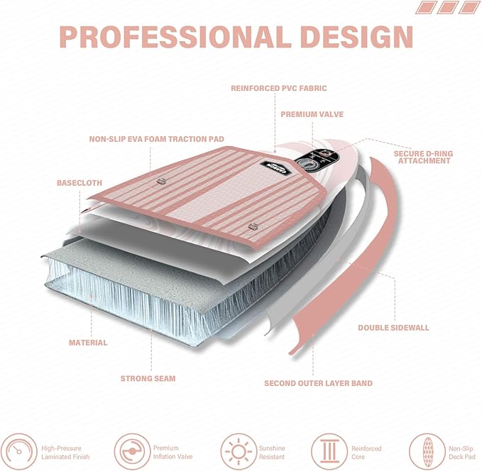 • Premium Accessory Package:Polar Rose collection inflatable paddle board comes with high-quality accessories,including a comfortable kayak seat,waterproof phone bag, double-blade paddle,three detachable fins,convenient backpack, manual pump,cup holder, repair kit(no glue)and ankle safety leash. Everything you need for a fantastic paddling experience is included!