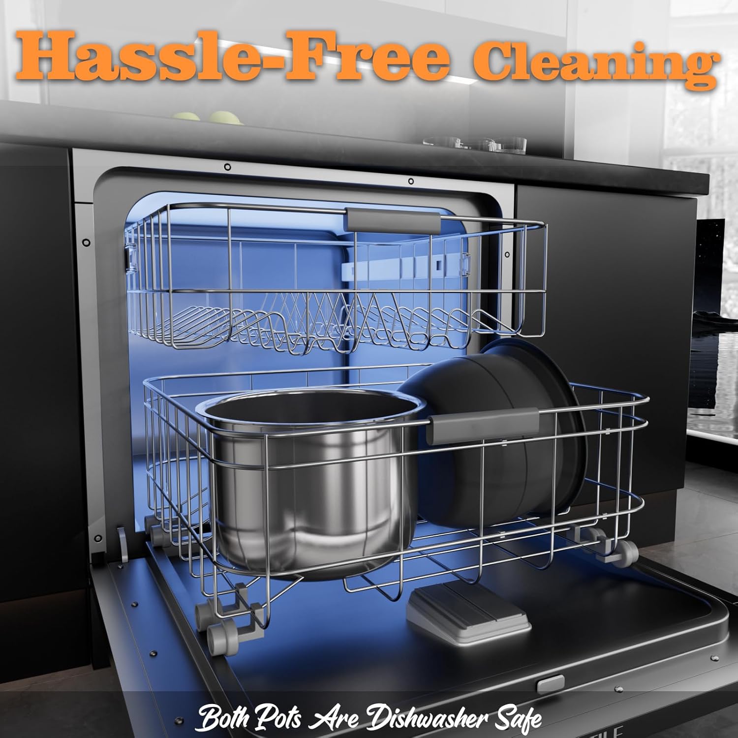 - ★Cleanup? Done in Seconds: Both pots and the lid are dishwasher-safe—no scrubbing, no hassle.