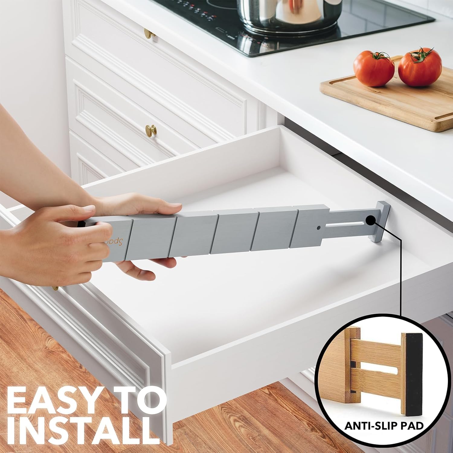 SpaceAid Bamboo Drawer Dividers with Inserts and Labels, Kitchen Adjustable Drawer Organizers, Expandable Organization for Home, Office, Dressers, 7 Dividers with 15 Inserts (17"-22" Gray)
