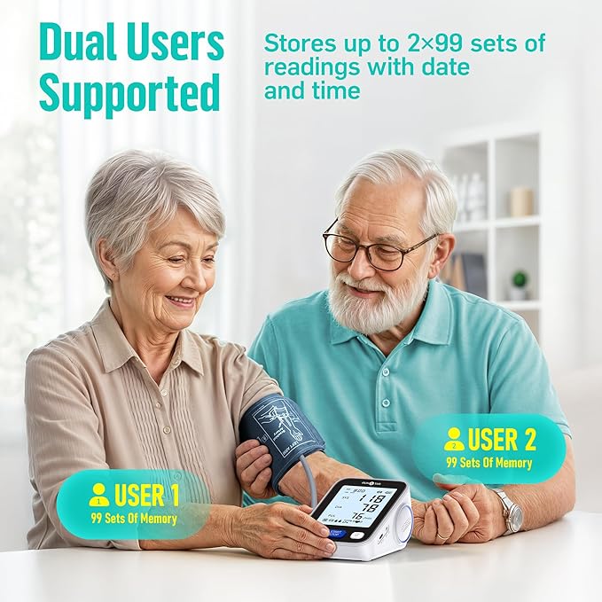 • [One Monitor, Two Hearts] Runstar Blood Pressure Monitor is perfect for home use. It supports 2 users and saves 99 measurement readings with date and time for each user in its internal memory. This allows you to easily monitor your blood pressure and health status. Let's prioritize our HEALTH with our loved ones!