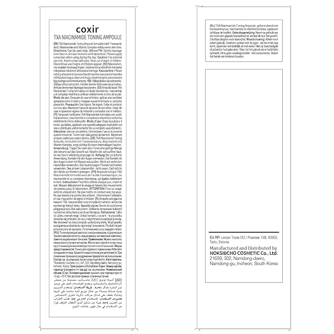 coxir TXA Niacinamide Toning Ampoule – Korean Face Serum with Tranexamic Acid & Vitamin C for Even Skin Tone, Radiance & Hydration – Calming and Lightweight – 50ml/1.69 fl.oz