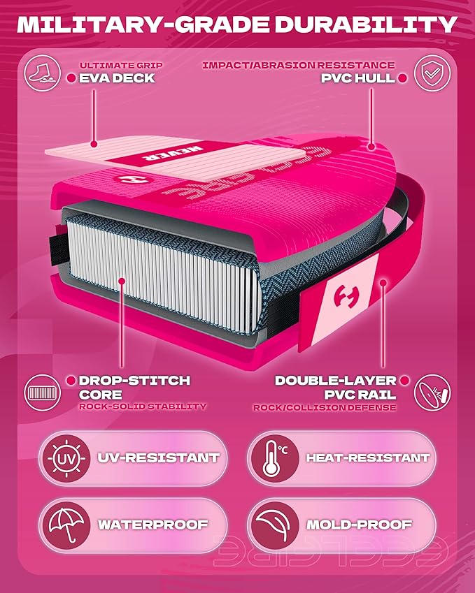 • ใ€๐— ๐—ถ๐—น๐—ถ๐˜๐—ฎ๐—ฟ๐˜†-๐—š๐—ฟ๐—ฎ๐—ฑ๐—ฒ ๐—ฃ๐—ฉ๐—– ๐—ฎ๐—ป๐—ฑ ๐—ก๐—ผ๐—ป๐˜€๐—น๐—ถ๐—ฝ ๐—˜๐—ฉ๐—” ๐—ณ๐—ผ๐—ฟ ๐—Ÿ๐—ผ๐—ป๐—ด-๐—Ÿ๐—ฎ๐˜€๐˜๐—ถ๐—ป๐—ด ๐—ฃ๐—ฒ๐—ฟ๐—ณ๐—ผ๐—ฟ๐—บ๐—ฎ๐—ป๐—ฐ๐—ฒใ€‘ Featured with military-grade PVC and advanced drop-stitch, the Feelfire paddleboard is built for rugged conditions. Such as rocky rivers or exposure to saltwater and sunlight. The EVA diamond-patterned surface enhances foot traction and quick drainage, reducing slip risk. This design helps paddlers easily adjust their stance and center of gravity in windy or wavy conditions.