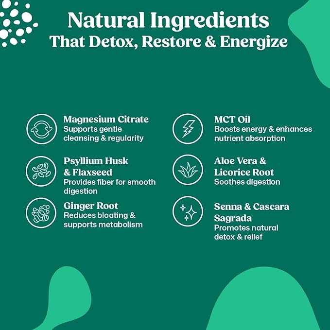 • Banish Bloating & Boost Energy - Ginger Root & MCT Oil support digestion, speed up metabolism, and improve nutrient absorption - no sluggish, drained feeling like other colon cleanser detox products.