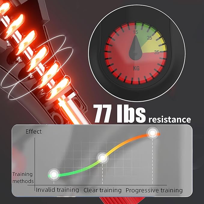 • Adjustable Resistance from 0-77 lbs with Visible Pressure Gauge Customize your workout intensity with adjustable resistance ranging from 0 to 77 lbs, monitored by a clear pressure gauge for precise control.