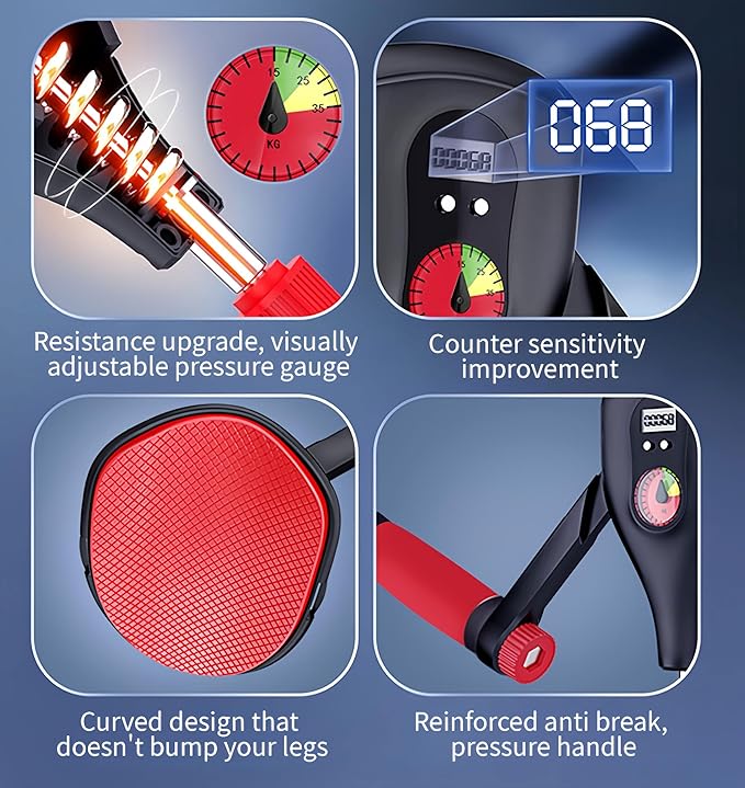 • Adjustable Resistance from 0-77 lbs with Visible Pressure Gauge Customize your workout intensity with adjustable resistance ranging from 0 to 77 lbs, monitored by a clear pressure gauge for precise control.