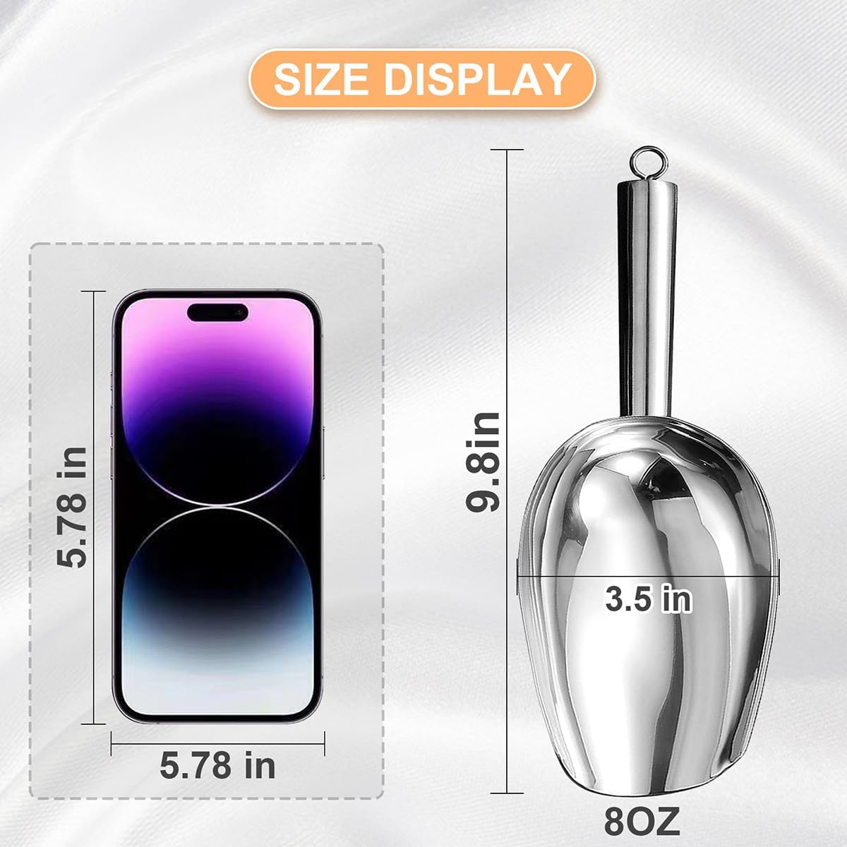 - 【Easy to use】: It's much easier to use than plastic ice scoops or tongs,polished finish keep scoop always smooth that the Ice don't stick to it, and you can get ice exactly as expected. Also,you can use this sturdy metal scoop to break up connected ice cubes.