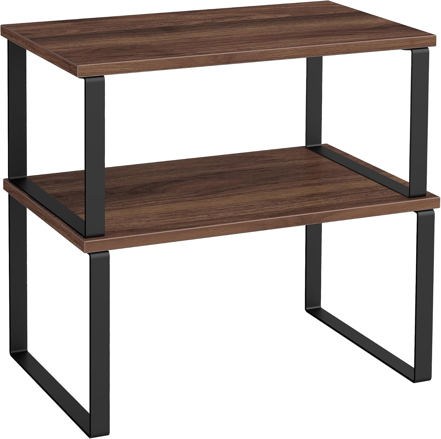 SONGMICS Cabinet Organizer Shelf, Set of 2 Kitchen Counter Shelves, Kitchen Storage, Spice Rack, Stackable, Expandable, Metal and Engineered Wood, Natural Walnut and Matte Black UKCS020K01