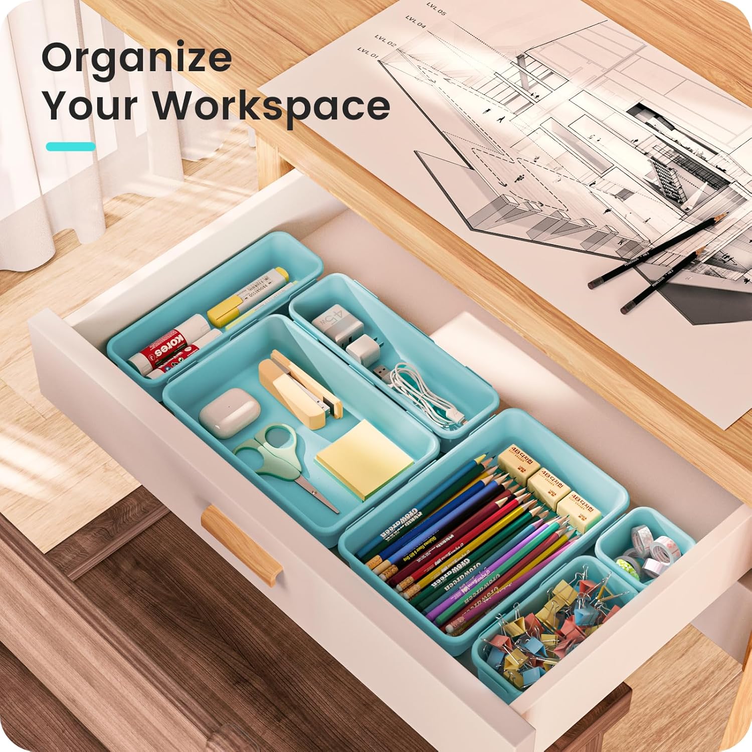 - 【Easy to Clean】 ---- Our desk drawer storage bins are easy to wipe with a damp cloth and are perfect for keeping everything in its place. Convenient for use in your daily life, it makes everything look beautiful and better organized.