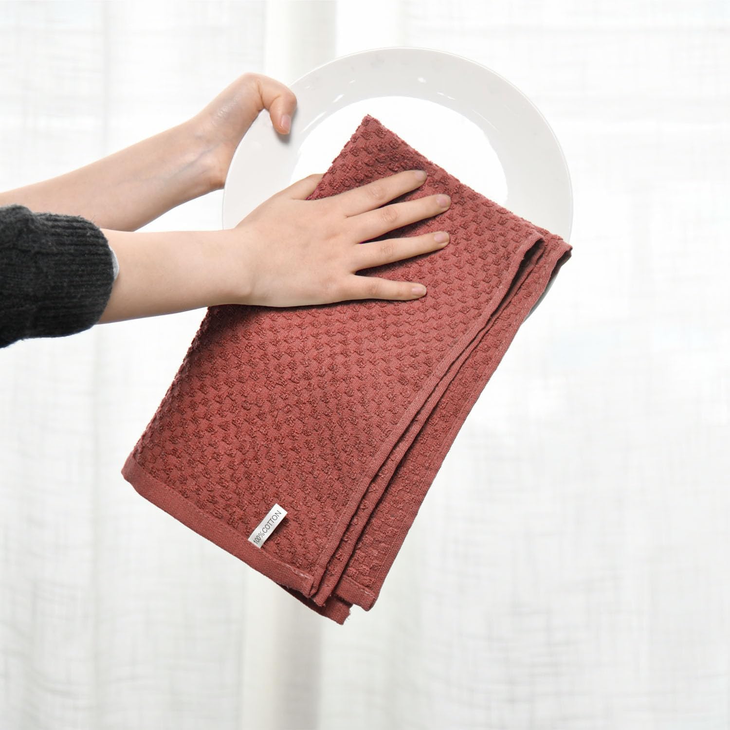 - COTTON DISH CLOTHS: 100% cotton dishcloths that feel soft and comfortable. Unique design make it have durability. And it softens with each wash, so these dish towels won't scratch your delicate cookware, plates and pans.