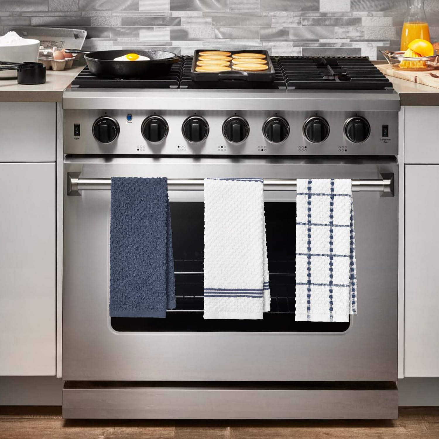 - VALUE PACK: Collection includes 6 cotton kitchen towels available in a variety of colors to coordinate with any kitchen décor. Measures 15 in x 25 in.